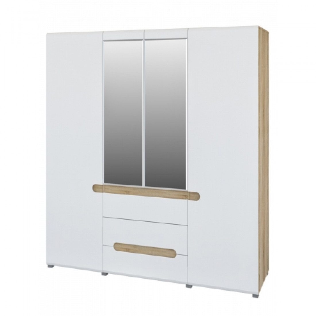 Четырехстворчатый шкаф для одежды и белья с зеркалом в спальню Леонардо МН-026-09-С1