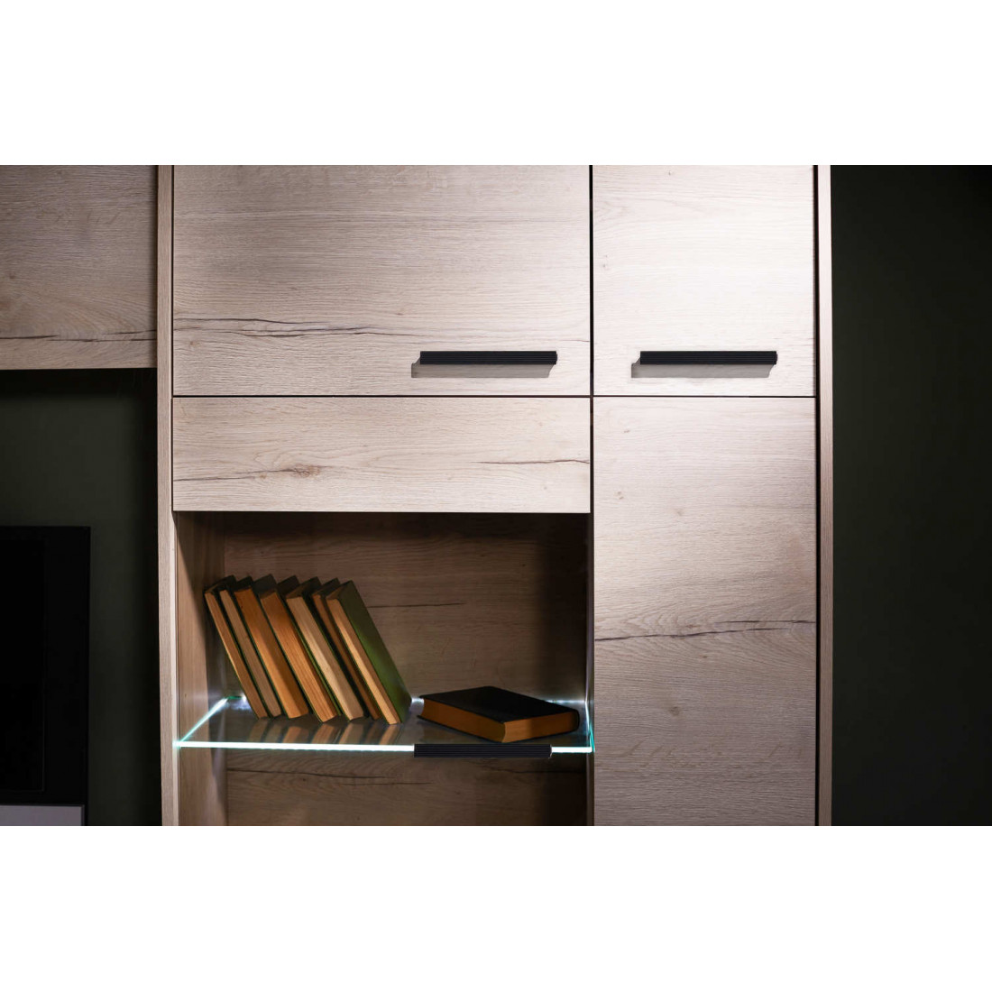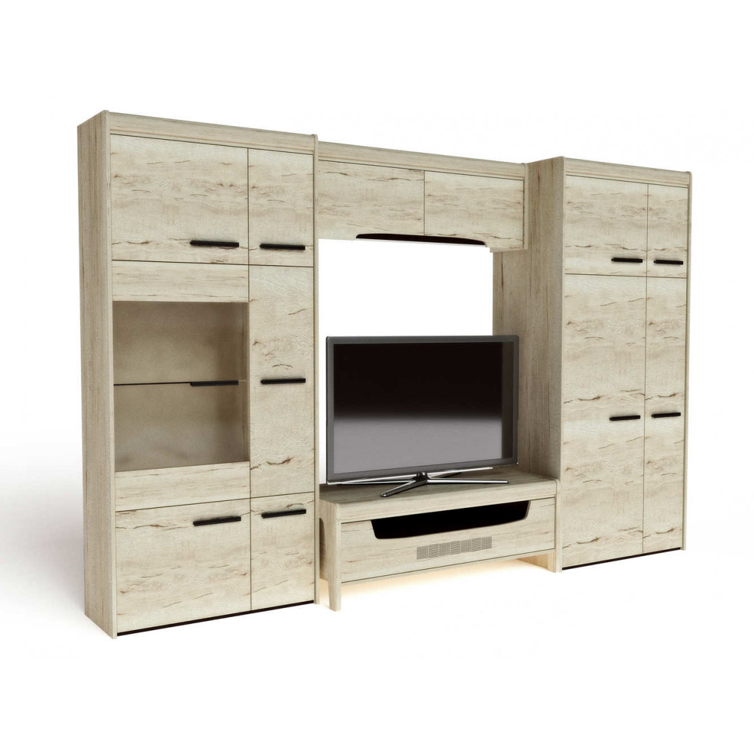 Гостиная «Мале» - обладательница лаконичного и свежего дизайна. Особое внимание привлекают тактильные ощущения от прикосновения к мебели. Декор и структуры, схожие с натуральным деревом по рисунку и шероховатости, придают глубину и естественность. Широкий спектр модулей позволит эргономично использовать Ваше пространство.