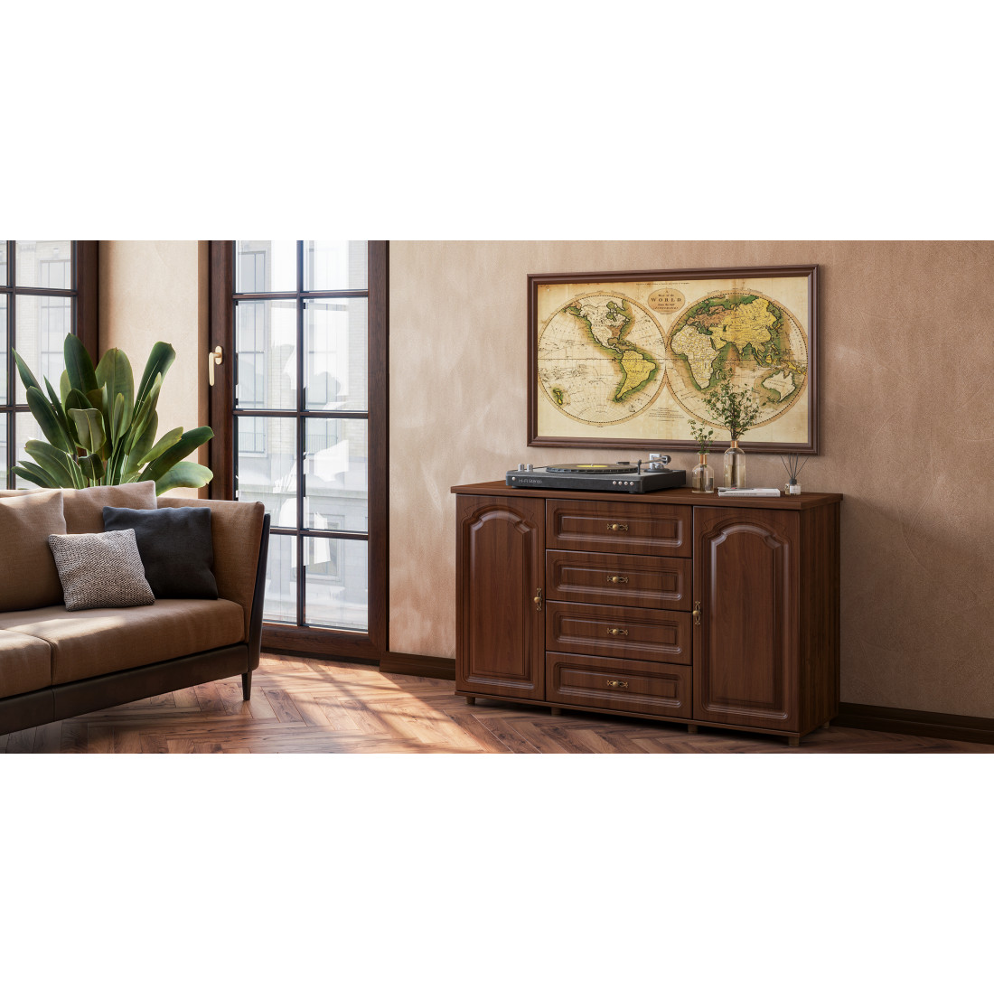 Комод для гостиной Романтика ВК-09-07, цветовое исполнение орех структурный.