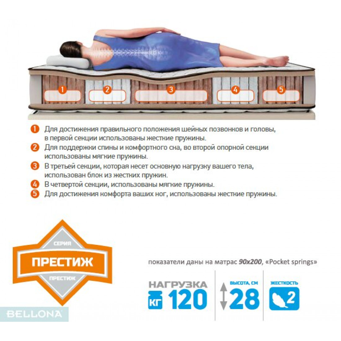 5-ти зональный пружинный блок позволяет достичь анатомически правильного положения позвоночника, при этом мышцы спины полностью расслаблены и тело отдыхает. На утро ощущения бодрости и энергичности которого хватит для очередного дня полного событий и эмоций. Сочетание разных зон жесткости пружинного блока "Pocket springs" позволяет повторить изгибы вашего тела, давая возможность принять правильное положение позвоночнику, предоставляя Вам максимальный комфорт и улучшенный ортопедический эффект.