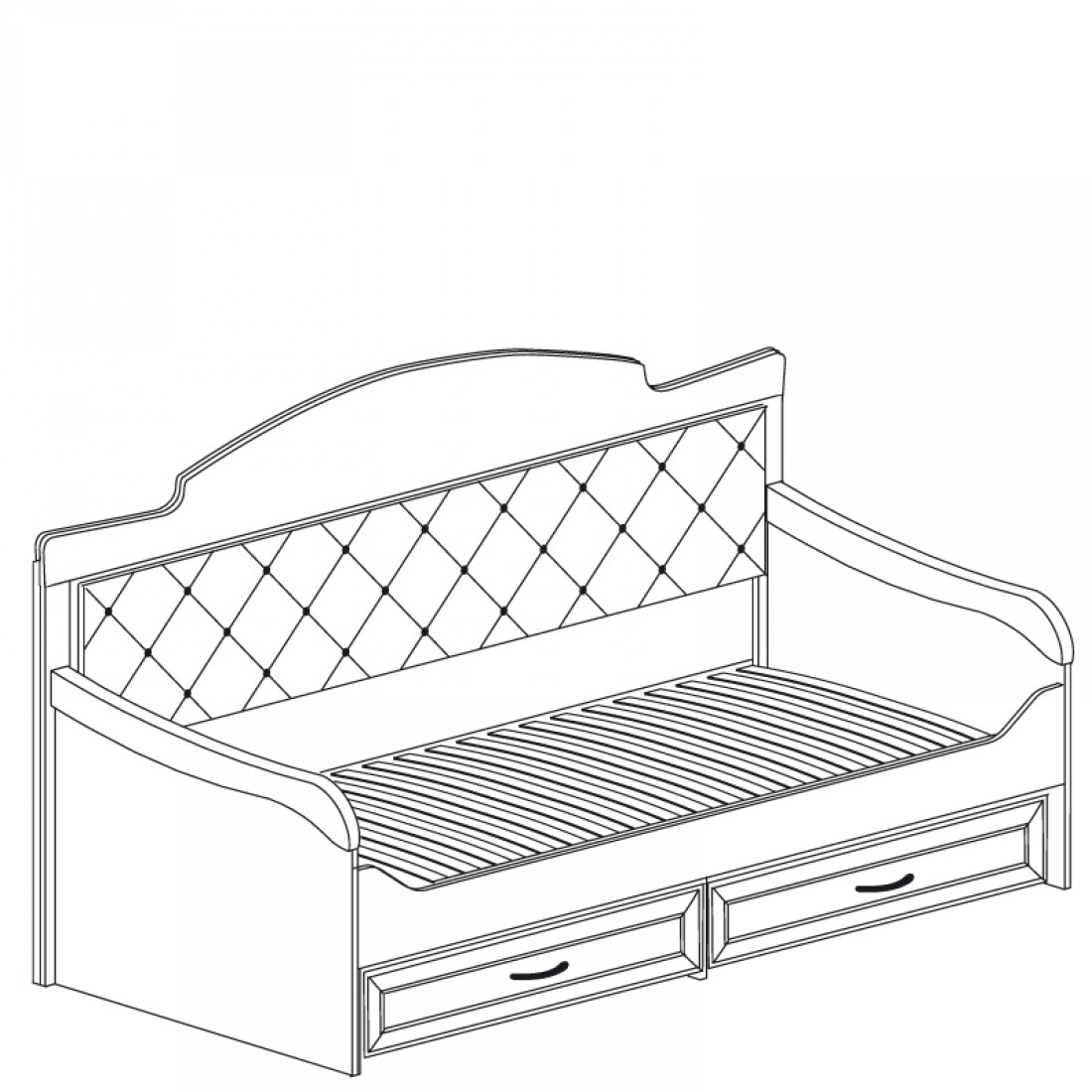 Корпус: ДСП, декор – дуб ридинг. Основание кровати – ламели