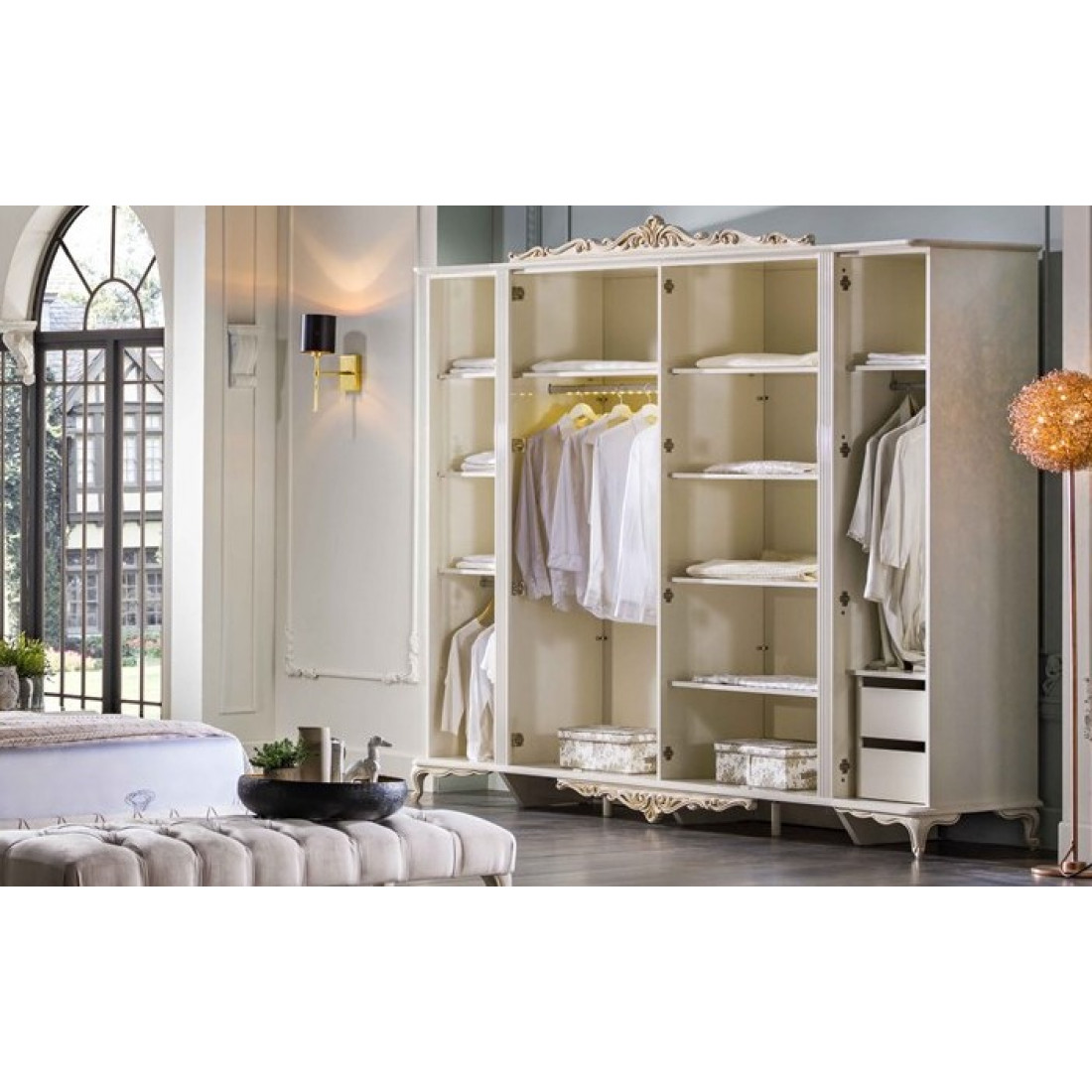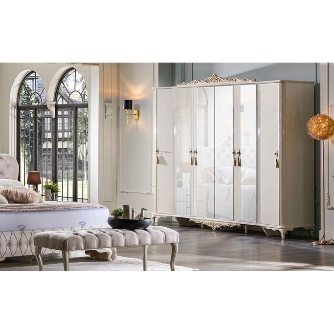 Серия Mariana разработана, чтобы оправдать все ожидания наших потребителей, ищущих классическую модель премиум-класса. Коллекция Mariana выполнена в классическом стиле Bellona, который включает в себя современные авангардные детали вместо обычного тяжелого классического стиля. Во всем наборе используются панели с высоким глянцем. В нашей новой модели, с использованием наклонной линии дизайна по направлению к массивным краям, продукту придали великолепие выгравированной короной, роскошной структурой ножек и косметическим зеркалом, выполненным в авангардном стиле.