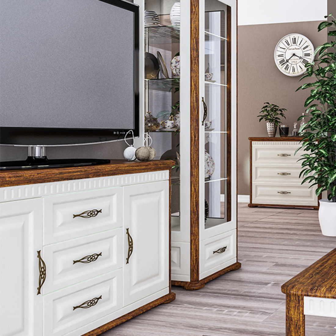 Функциональная, красивая и элегантная тумба МН-126-16 для гостиной новой коллекции Марсель от Мебель-Неман выполнена современном стиле. Теплый оттенок "крем" корпуса и фасадной части дополнен эффектным рамочным обрамлением контрастного цвета "дуб кантри".