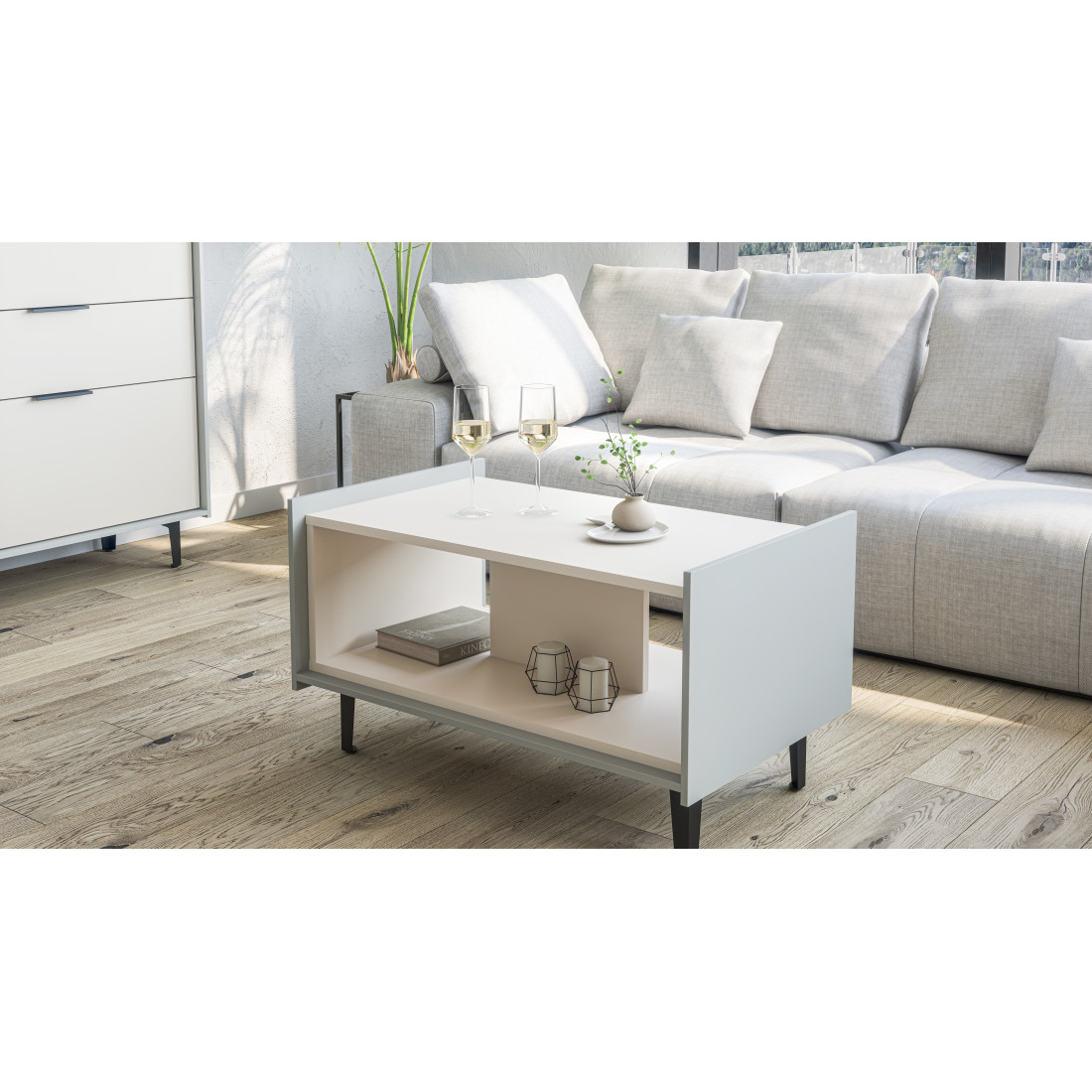 Журнальный столик Модена – современное и практичное решение для вашего интерьера. Выберите из трех стильных вариантов цветов: Белый-Дуб Элисон, Лунный камень-жемчуг, металл Бруклин-лунный жемчуг. Металлические ножки с регулировкой высоты обеспечивают комфорт и функциональность. Придайте своему пространству уникальный шарм с этим элегантным журнальным столиком.